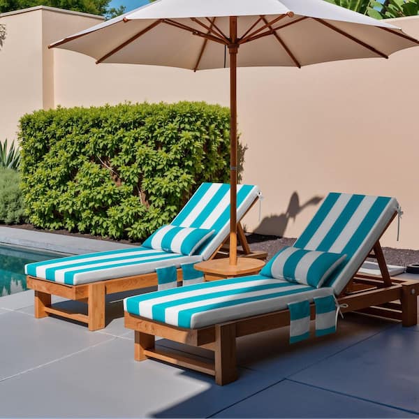 72 in. x 21 in. 2-Piece Outdoor Polyester Patio Chaise Lounge Cushion in Blue and White
