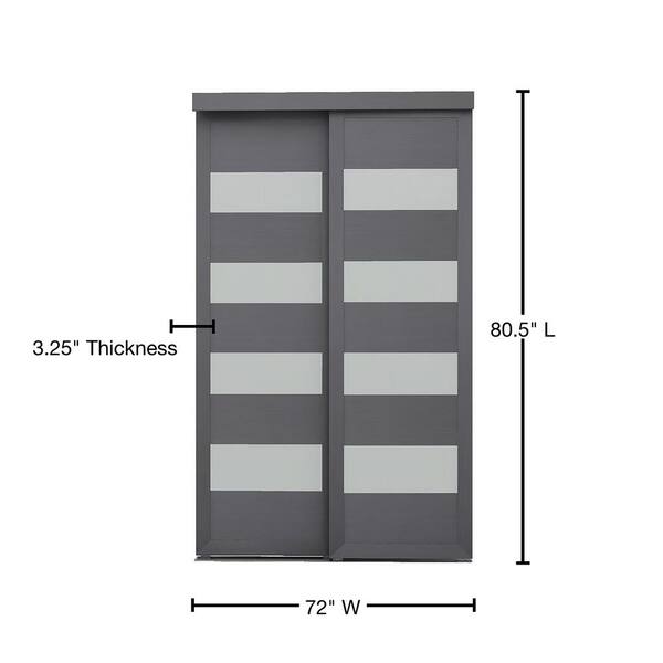 72 in. x 80.5 in. 4-Lite Grey MDF Frosted Sliding Closet Door