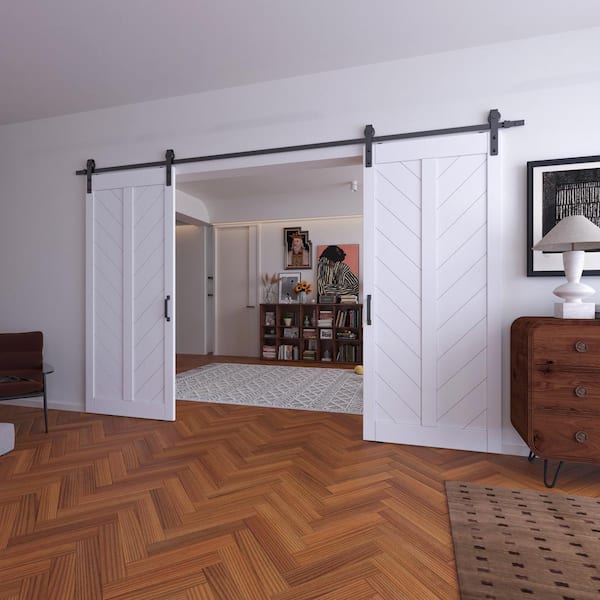 72 in. x 84 in. (2 in. x 36 in. Doors) White V-Shape Finished, MDF Sliding Barn Door with Hardware Kit .