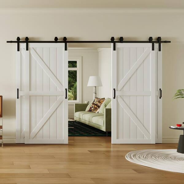 72 in. x 84 in. (Double 36 in. Doors) White, MDF and DIY Painted, Double K-Shape Sliding Barn Door with Hardware Kit