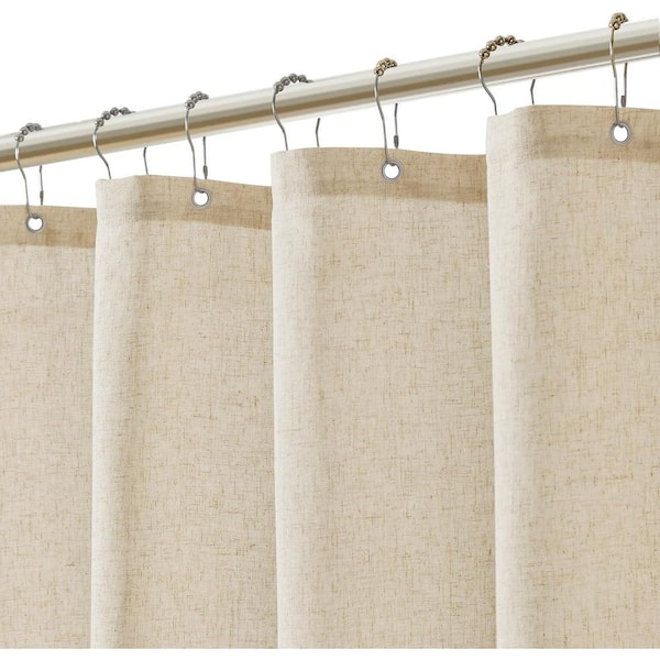 72 x 72 in. Heavy Duty Washable Linen Shower Curtain Set with 12-Metal Hooks in Cream, Neutral Thick Cloth for Bathroom