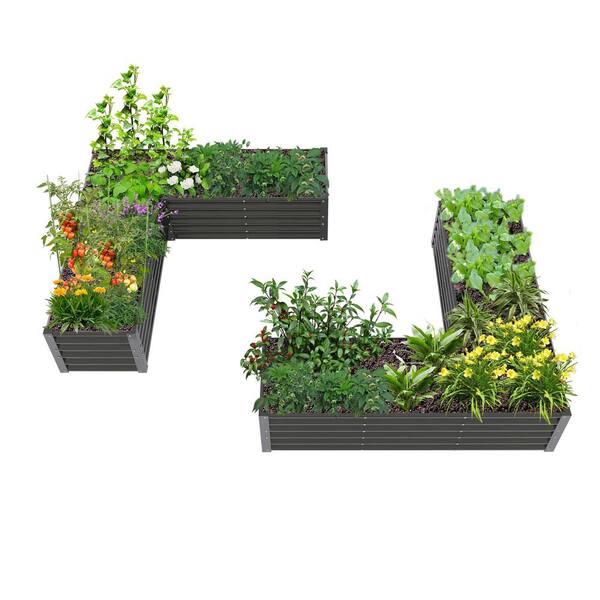 74 in. x 74 in. x 18 in. Gray Metal L-Shaped Outdoor Galvanized Raised Garden Beds, Planter Box for Planting (2-Pack)