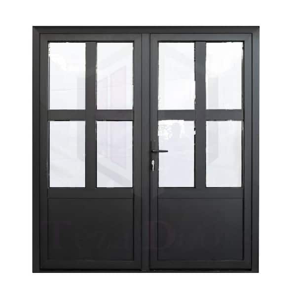 75 Series 62 in x 80 in Right Hand Matte Black Tempered Low-E Aluminum Double Prehung French Door