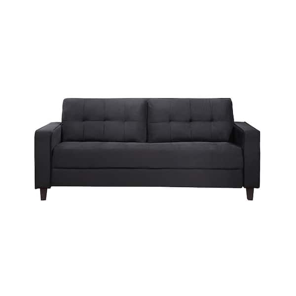 76.38 in. Wide Square Arms Velvet Straight Modern Comfortable Sofa 3-Seat Sofa in Black
