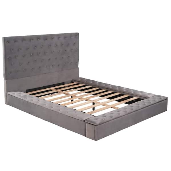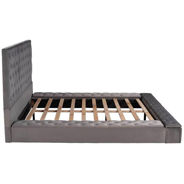 76.70 in. W Gray Queen Wood Frame L-Shaped Storage Platform Bed