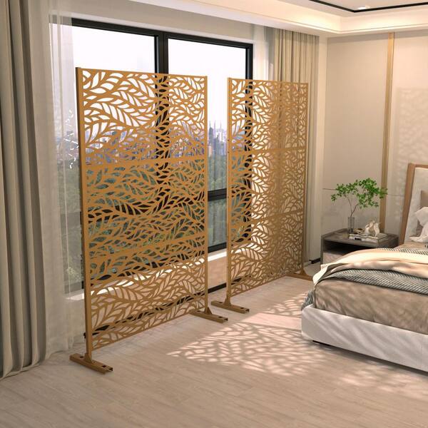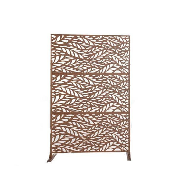 76 in. Brown Patio Metal Decorative Privacy Screen, Freestanding Outdoor Divider