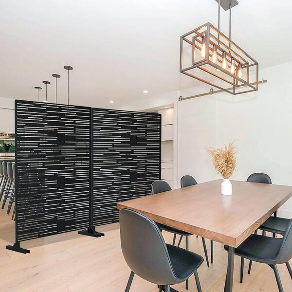 76 in. H x 47.2 in. W Outdoor Privacy Screen with Stand Freestanding Metal Divider for Garden Patio Backyard Black