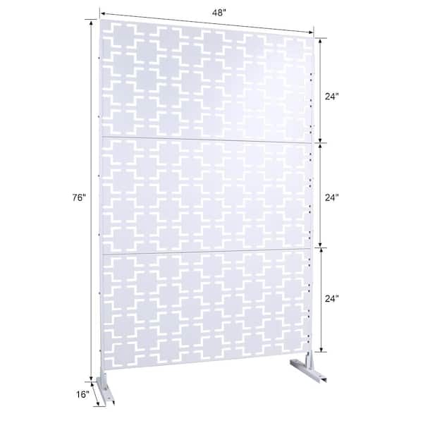 76 in. H x 48 in. W White Outdoor Steel Privacy Screen Freestanding Decorative Privacy Screen for Deck Balcony Patio
