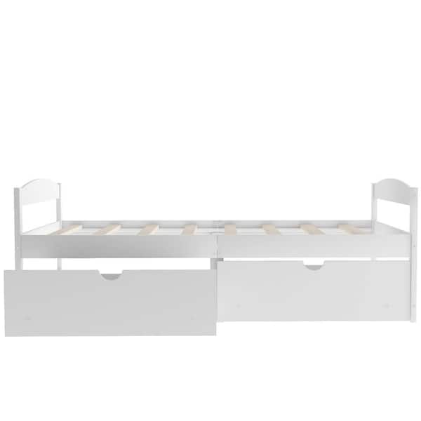 77.1 in. W White Wood Frame Twin Size Platform Bed with 2-Drawer