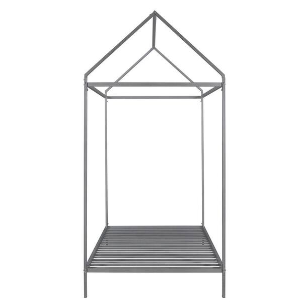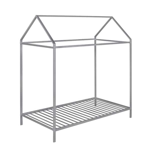 78.11 in. W Silver Metal Frame Twin Size Platform Bed with House