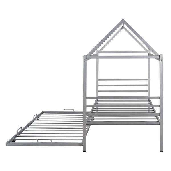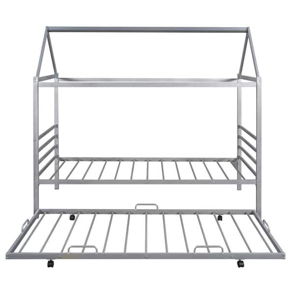 78.3 in. W Silver Twin Size Metal Frame House Shape Platform Bed with Trundle