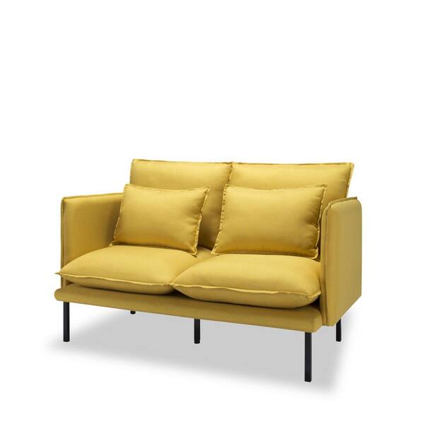 78.5 in.W Square Arm Polyester Standard Straight with 2 Pillows Sofa in Yellow