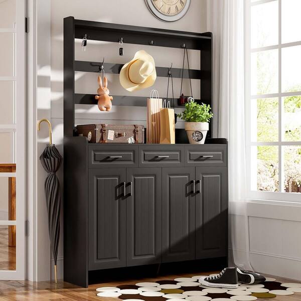 78.7 in. H x 51.2 in. W Black MDF Shoe Storage Cabinet Tall Shoe Organizer Cabinet with Coat Rack and Drawers