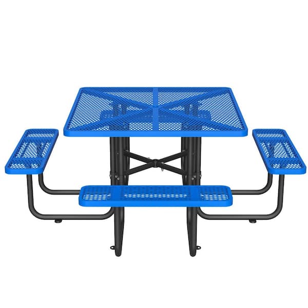 78.74 in. Blue Square Steel Picnic Table Seats 4-8 People with Umbrella Hole