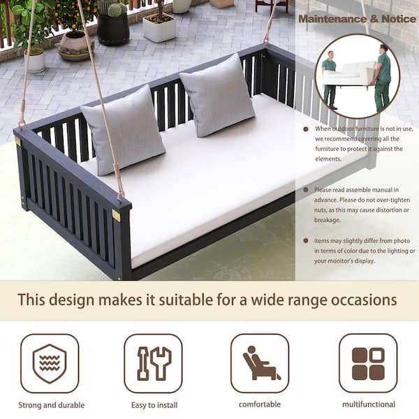 79.1 in. 2-Person Black Wood Porch Swing with Ropes