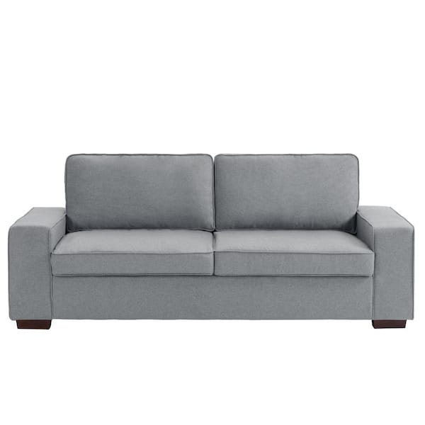 79.8 in. Gray Linen Upholstered Square Arm 2-Seater Loveseat Sofa with Wood Legs
