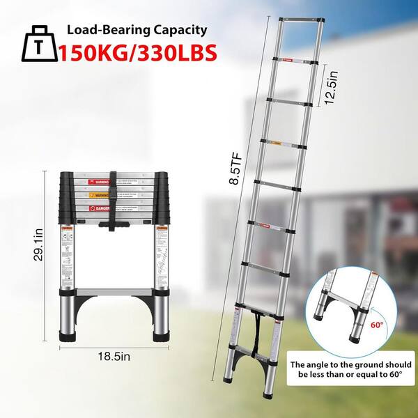 8.5 ft. Stainless Steel Telescoping Ladder with 1-Button Retraction, 375 lbs. Capacity