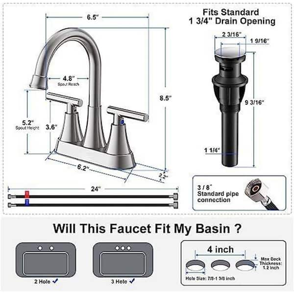 8.5 in. 3-Hole 4 in. Bathroom Sink Faucet with Pop-Up Waste Spout, Silver- Bathroom Accessory Sets, Number of Pieces-3