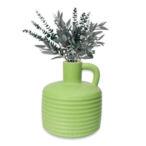 8.5 in. Green Cylinder Ceramic Decorative Handmade Bud Vase