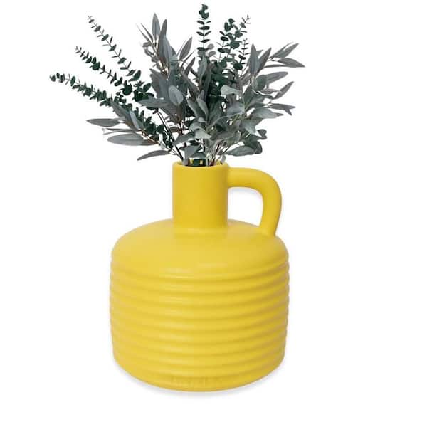 8.5 in. Yellow Cylinder Ceramic Decorative Handmade Bud Vase