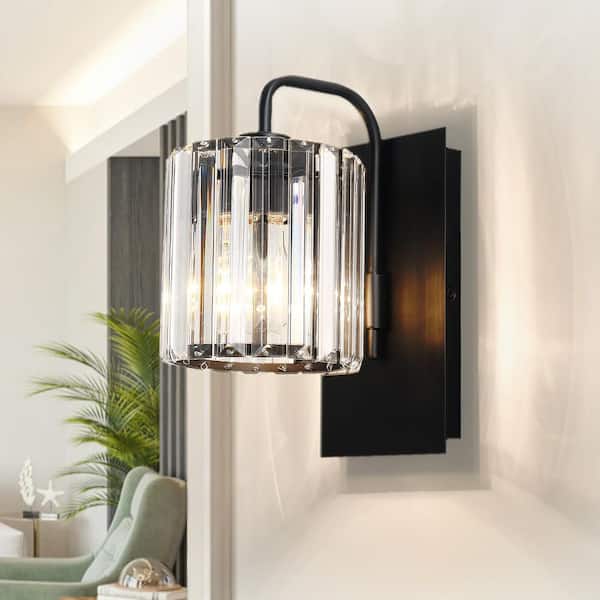 8.66 inch 1 Light Matte Black Modern Dimmable Wall Sconce for Bedroom Hallway Wall Light with Crystal Shade