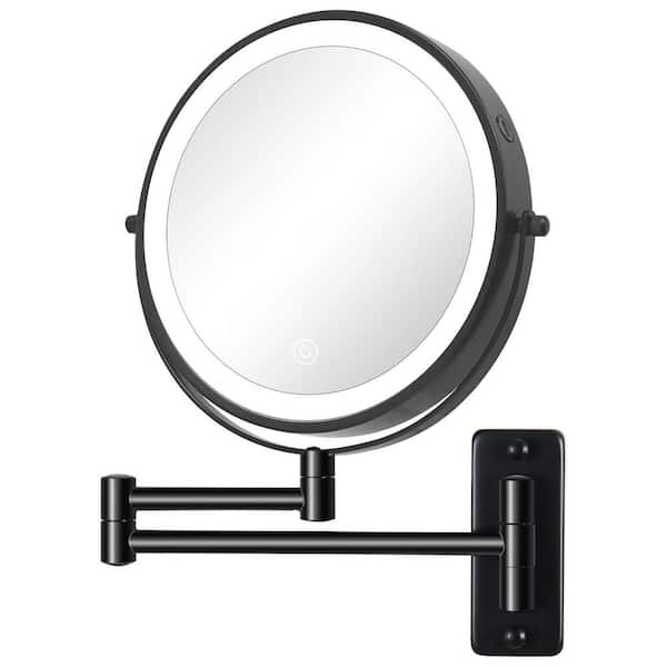 8.7 in. W x 12 in. H Round Metal Framed LED Magnifying Wall Bathroom Vanity Mirror in Black