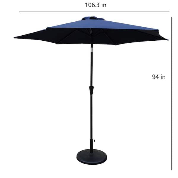 8.8 ft. Market Patio Umbrella with 42 lbs. Round Resin Umbrella Base in Blue