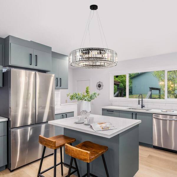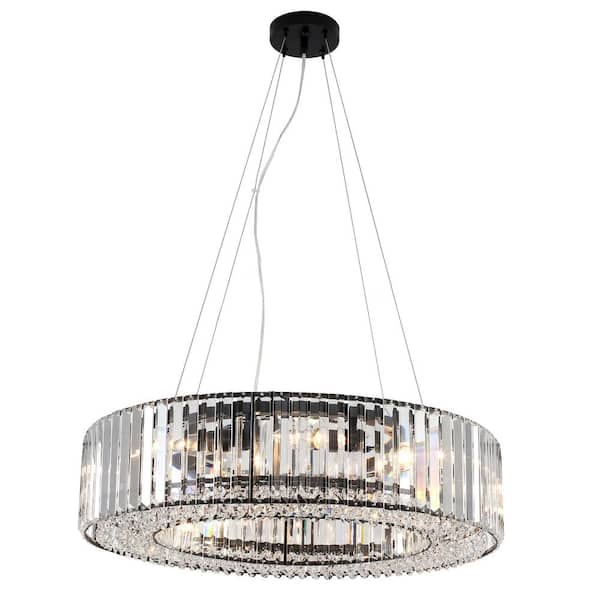 8-Light Chrome Crystal Modern Chandelier Circle Round Pendant Hanging Light for Dining Living Room