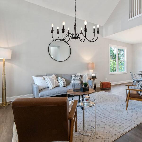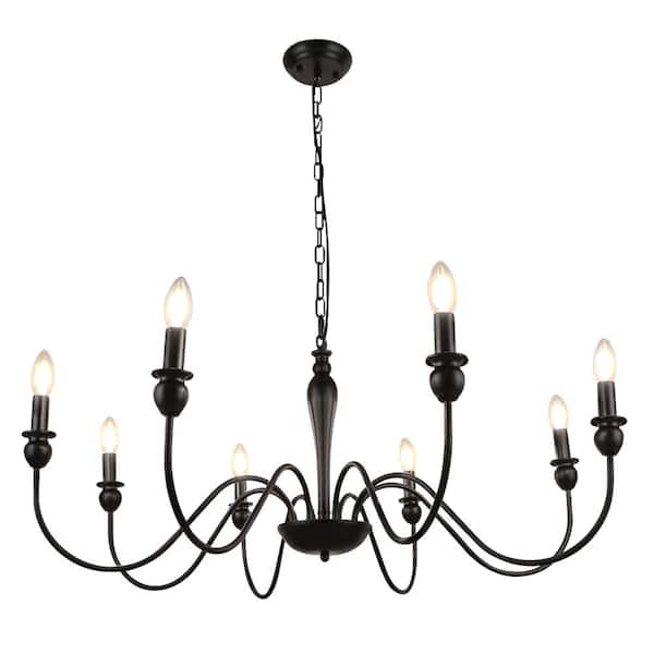 8-Light Rustic Industrial Iron Hanging Black Chandeliers for Entryway Foyer Living Room Bedroom