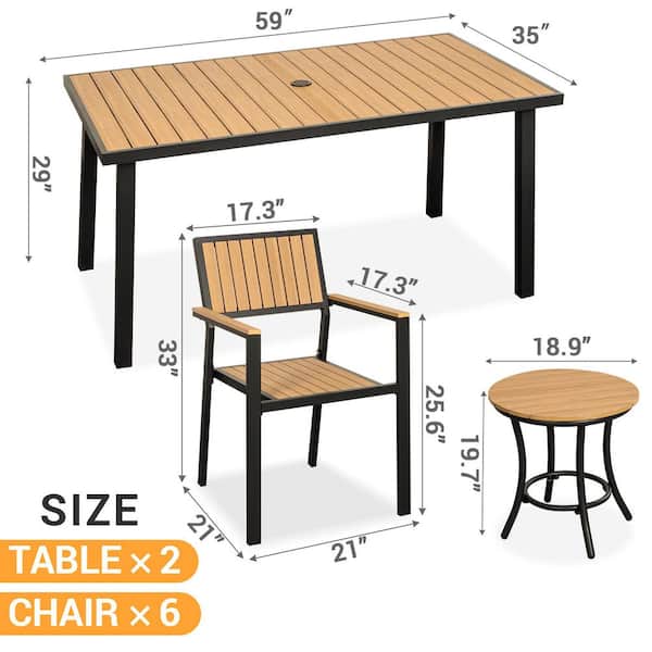 8-Piece Aluminum Outdoor Patio Dining Set with Rectangle Table, Small Side Table and 6-Stackable Chairs