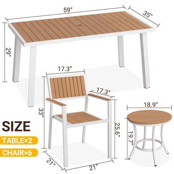 8-Piece Aluminum Yellow Outdoor Patio Dining Set with Rectangle Table, Small Side Table and 6-Stackable Chairs