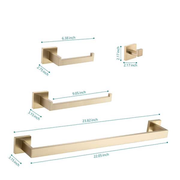 8-Piece Bathroom Hardware Set in Brushed Gold