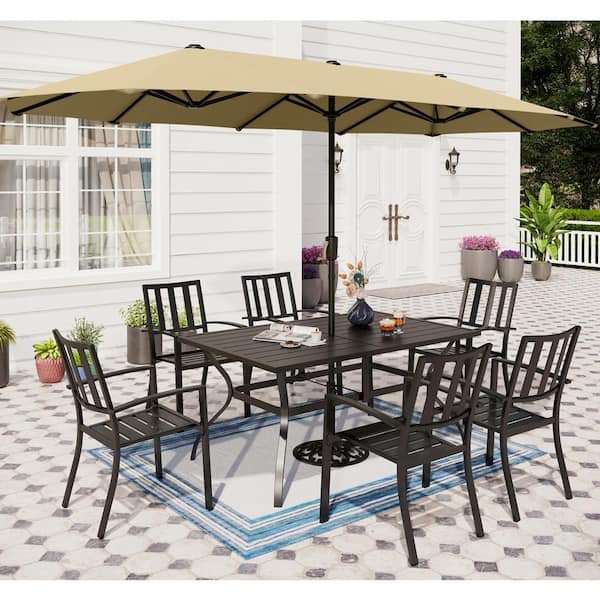 8-Piece Metal Rectangle Patio Outdoor Dining Set with Beige Umbrella