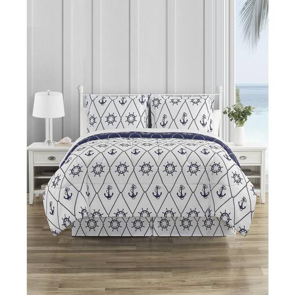 8-Piece Navy Anchor Away Ultra Soft Microfiber California King Reversible Bed Bag Comforter Set