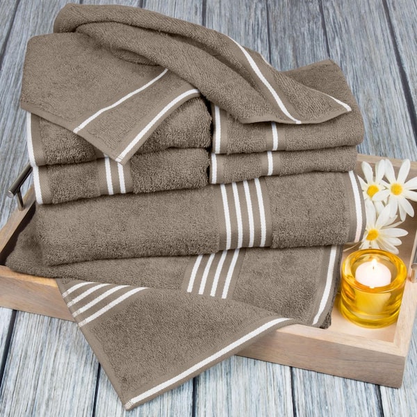 8-Piece Taupe 100% Cotton Bath Towel Set