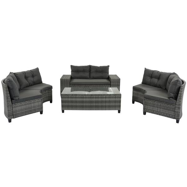 8-Piece Wicker Patio Conversation Sectional Seating Set with Charcoal Cushions