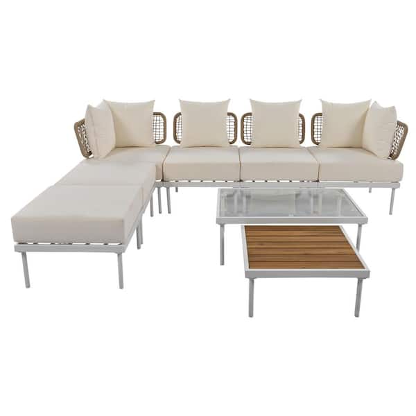 8 Pieces Durable Metal Patio Conversation Outdoor Couch Patio Sectional Sofa Sets with Beige Cushions for Backyard Lawn