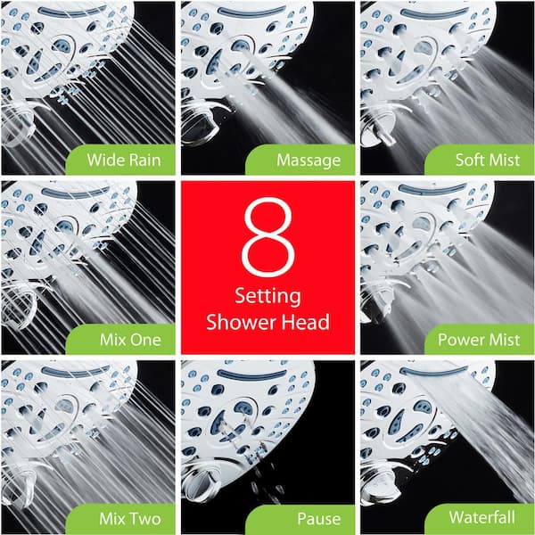 8-Spray Patterns 7 in. Single Wall Mount Fixed Shower Head Anti-microbial Waterfall in Chrome