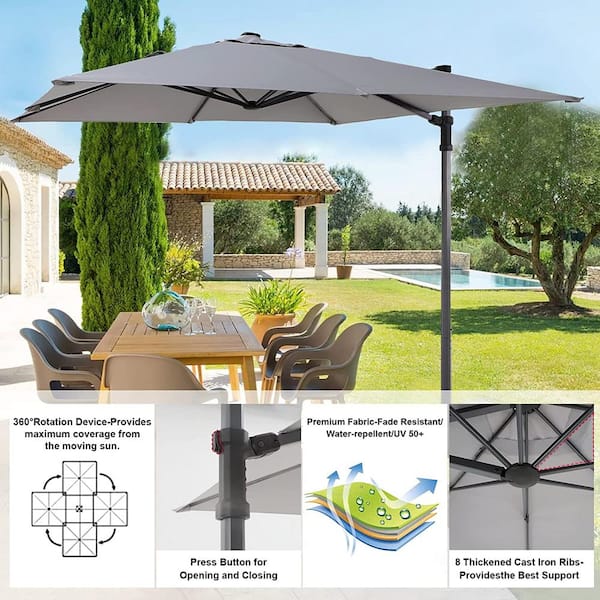 8 ft. Cast Iron Patio Cantilever Umbrella with Crank, Cross Base, 360-Degree Rotation Device, Light Gray