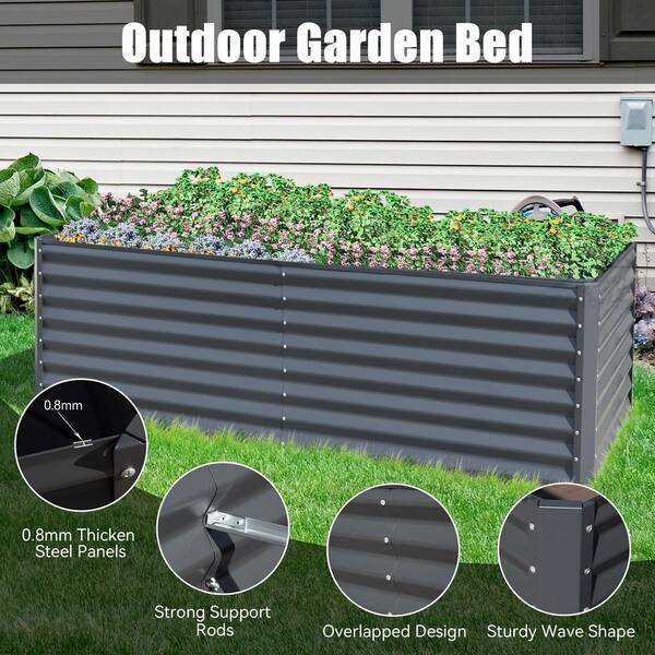 8 ft. L x 4 ft. W x 2 ft. H Gray Steel Planter Box for Gardening