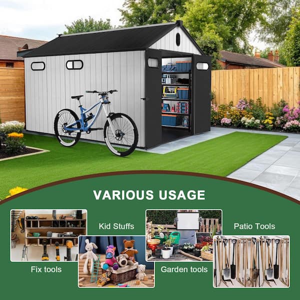 8 ft. W x 12 ft. D Outdoor Resin Storage Shed, Tool House with Floor, Lockable Doors, Air vents in Gray (87 sq. ft. )