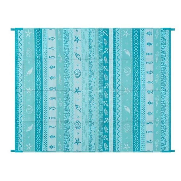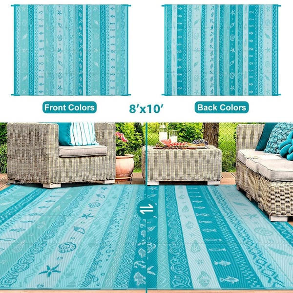 8 ft. x 10 ft. Reversible Outdoor Plastic Straw Rug for Camping, Large RV Outdoor Patio Rug (Blue/Multi)