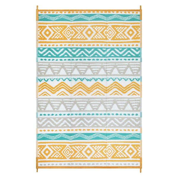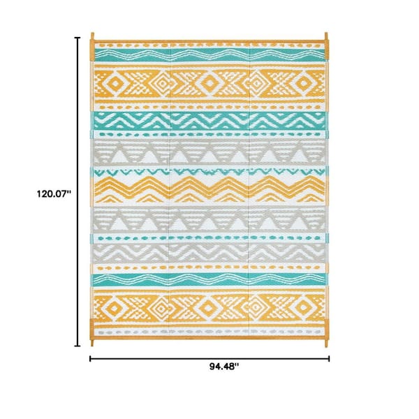 8 ft. x 10 ft. Reversible Outdoor Plastic Straw Rug for Camping, Large RV Outdoor Patio Rug (Blue/Yellow)