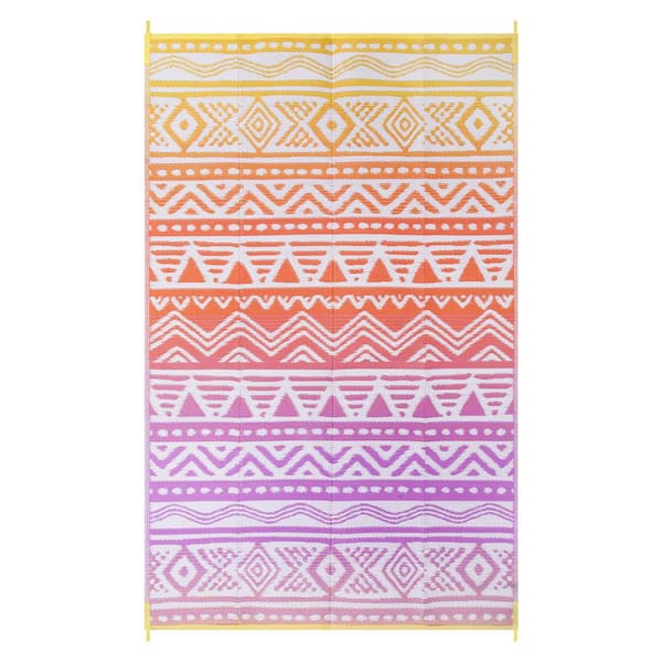 8 ft. x 10 ft. Reversible Outdoor Plastic Straw Rug for Camping, Large RV Outdoor Patio Rug (Orange/Purple)
