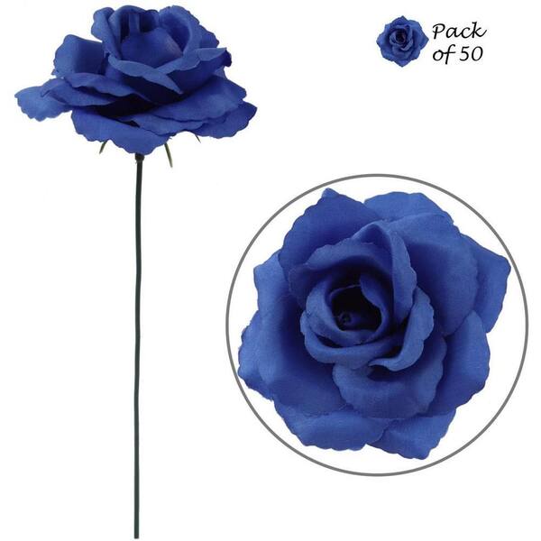 8 in. Artificial Royal Blue Silk Rose Flower Picks (50 Pack), Floral Home by Artificial Flowers