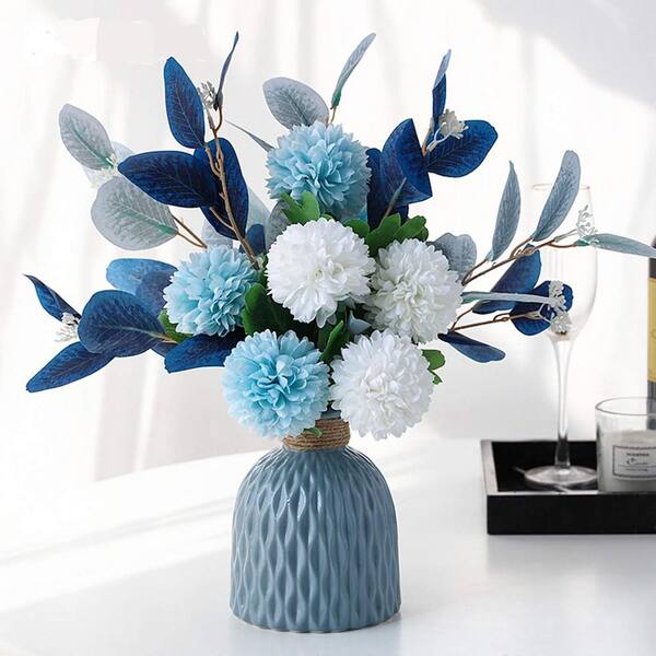 8 in. Blue Indoor Artificial Hydrangea Flower in Blue Vase