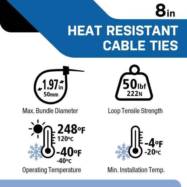 • 8" Heat-stabilized cable zip tie for high heat applications
