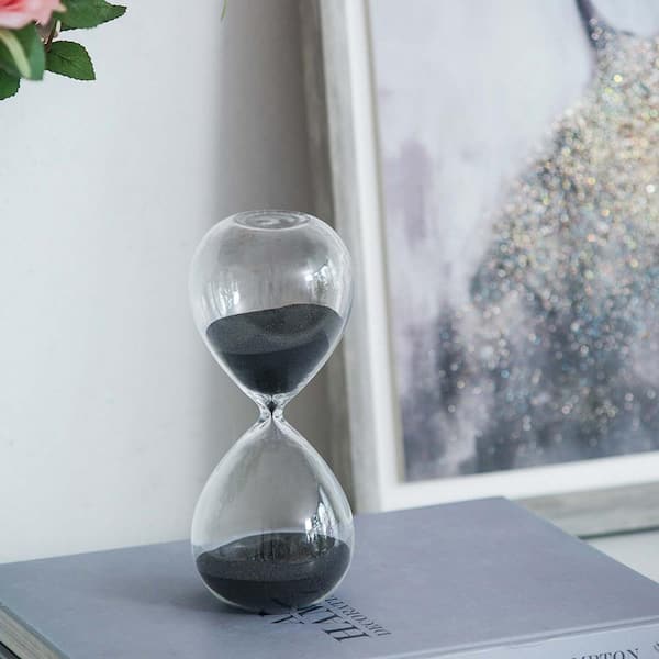 8 in. H Ferdinand Glass Hourglass 30 Minute Sand Timer Minimalist Sand Clock, Black Sand (Set of 2)