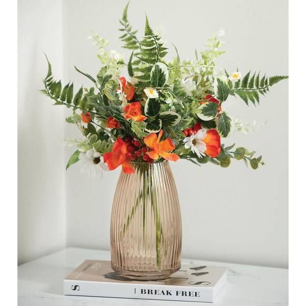 8 in. Orange Glass Round Decorative Vase for Modern Home Decor