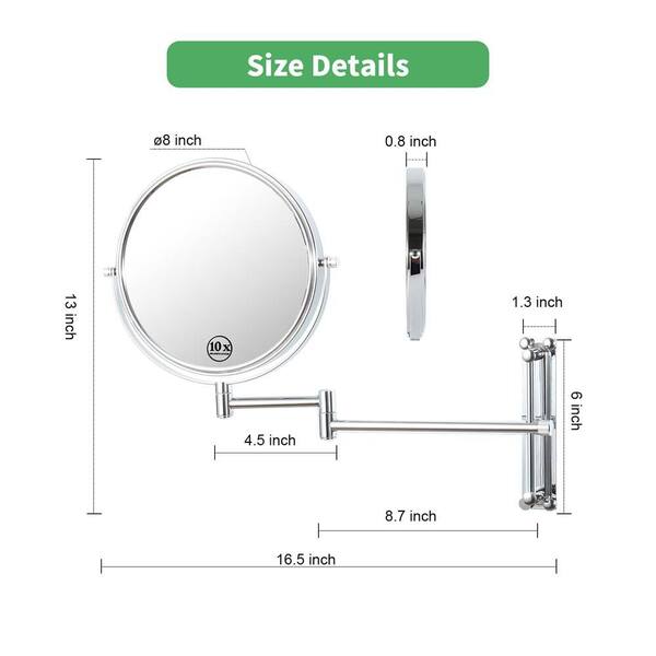 8 in. W x 8 in. H Round Framed Chrome Mirror 360° Swivel with Extension Arm Height Adjustable, 1X/10X Magnification